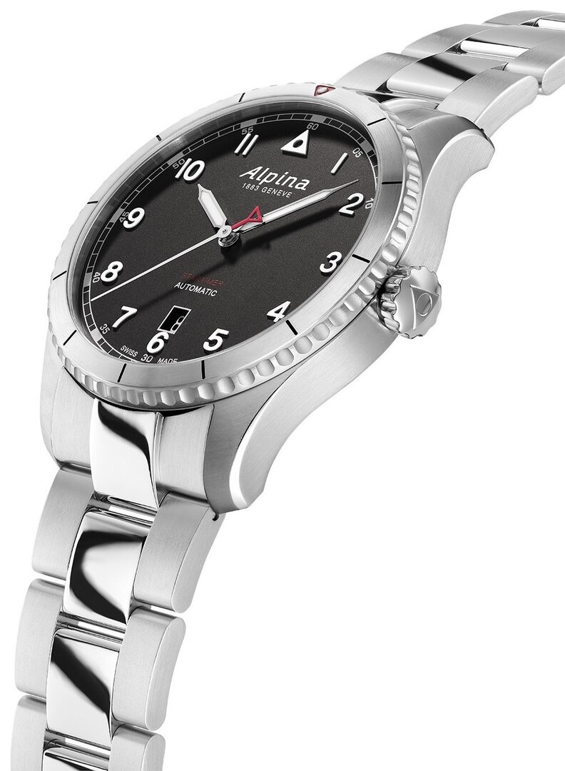 Mechaniczny z automatycznym naciągiem. Alpina AL-525 zbudowany na Sellita SW 200, Rezerwa chodu 38h, 28.800 BPH (4Hz), 26 kamieni