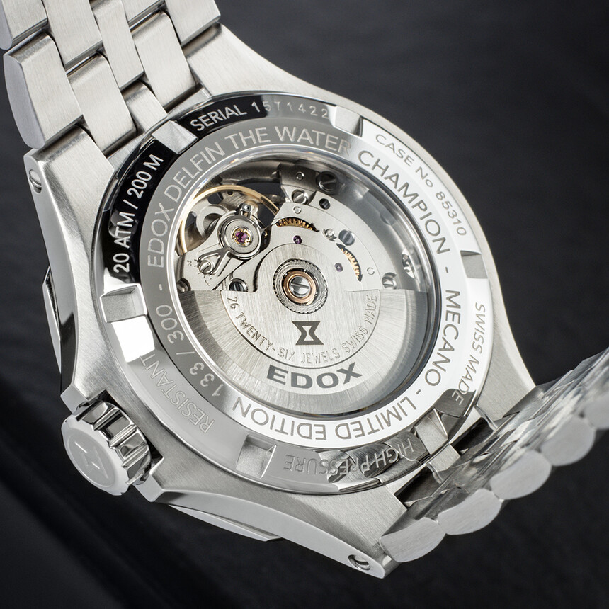 A przy tym zachowano wodoszczelność 200 m, co w zegarkach szkieletowych nie jest wcale takie oczywiste. Ale trudno się dziwić. Delfiny to znane zegarki nurkowe Edoxa już od ubiegłego stulecia i nawiązują do autentycznego nurkowego dziedzictwa.