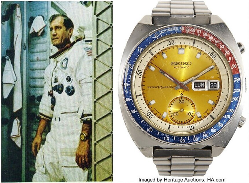W listopadzie 1973 astronauta William R. Pogue na misji Skylab 4 celowo zabrał swój prywatny zegarek Seiko 6139‑6005. Był to automatyczny chronograf z wyrazistą żółtą tarczą.