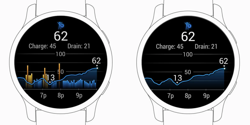 Idea tej funkcji jest dość prosta i praktyczna – wyrazić naładowanie twojego ciała w skali od 0 do 100. Najczęściej do obliczeń wchodzą takie zmienne, jak aktywność, stres, jakość snu itd.