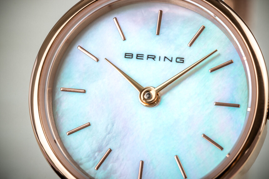 Maleńki Bering Classic 11022 z perłową tarczą i delikatną bransoletą typu mesh (tzw. Milanese) w naszym zestawieniu wraca nie bez powodu.