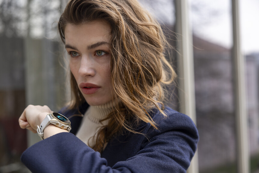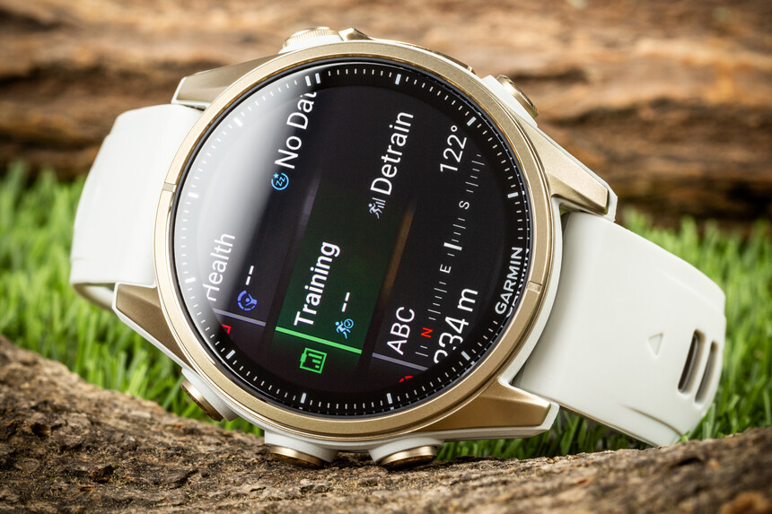 Podoba mi się, że po ponad 6 latach Garmin wprowadził większą zmianę designu, widoczną od pierwszego spojrzenia. Wyraźna modyfikacja lunety i nawet zmiana rozmiaru najmniejszego z rodziny to kroki mile widziane z perspektywy re-designu. „Ósemki” w najmniejszej wersji dodały bowiem milimetr do średnicy koperty i czuć to zarówno na nadgarstku, jak i w wadze. Natomiast luneta to duża różnica względem poprzedniej generacji. We wszystkich modelach jest cieńsza i nie ma już na niej grawerowanych opisów funkcji poszczególnych przycisków. Wokół całego obwodu lunety są zaś profile w kształcie „U” – łącznie 6.