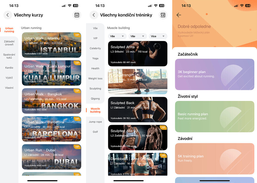Moją ulubioną sekcją w aplikacji są filmy instruktażowe, które poszerzają horyzonty treningowe. Możesz sięgnąć po gotowe plany treningowe lub biegać lub spacerować po niektórych miastach świata. To właśnie potrafi funkcja biegu miejskiego, symulująca trasę z niektórych stolic świata.