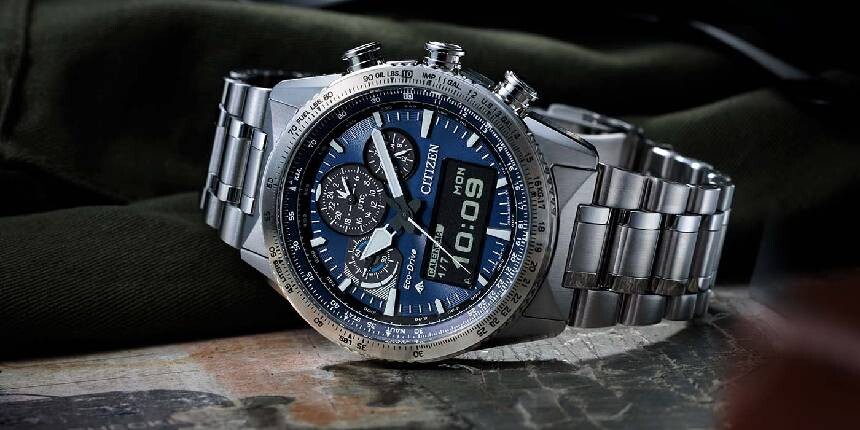 Ciekawym detalem jest też to, że z uwagi na umieszczenie wyświetlacza w dolnej części tarczy niektóre subtarcze musiano przenieść z ich zwyczajowej pozycji. Citizen logicznie umieścił je w górnej części tarczy, dodając jednak drobny „smaczek”. Producent ponownie zainspirował się tematyką lotniczą i subtarcze teraz przypominają układ przyrządów pokładowych w kokpicie samolotu. Profesjonalne wrażenie wzmacniają również dostępne warianty kolorystyczne tarczy: granatowa i czarna.