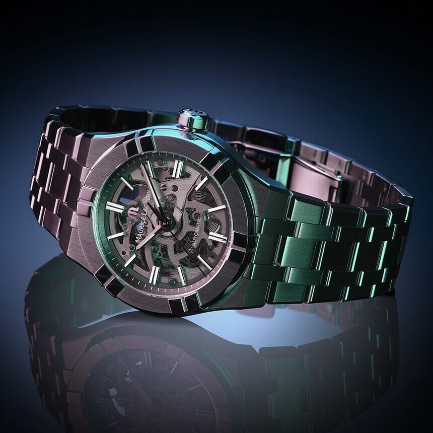 Skoro o mechanizmie mowa. Maurice Lacroix oferuje Aikona w sześciu wariantach werku. Automatyczny trzywskazówkowy, kwarcowy trzywskazówkowy, automatyczny chronograf i kwarcowy chronograf. Piąty, „bonusowy” werk to szkieletowany mechaniczny trzywskazówkowy, który jednak nazywa się tak samo jak automatyczny trzywskazówkowy – ML115.