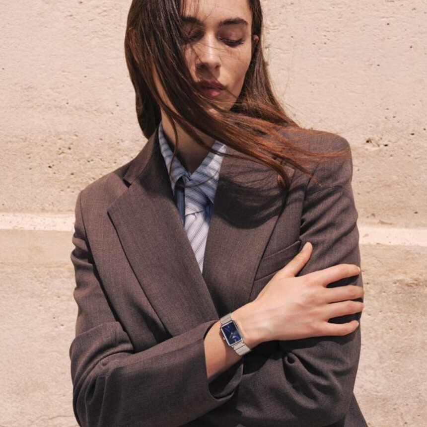 Nazwa SRV mówi wszystko: Sapphire Rectangle V. Ich kanciasta koperta i szafirowe szkło przypominające kamień szlachetny oddają język projektowy bez kompromisów – ostry, podczas gdy litera „V” odnosi się do wodoszczelności 5 ATM (czyli 50 m, a zegarek nadaje się także pod prysznic – choć z modelami na skórze niekoniecznie bym to polecała).