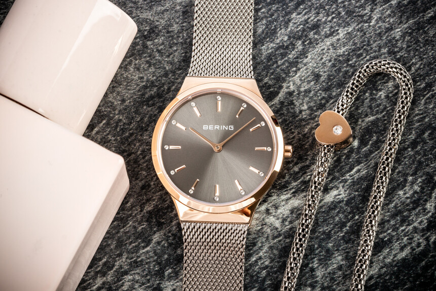 Zegarek pięknie komponuje się z inną biżuterią. Marka Bering stawia na zestawy, w których zegarek jest doskonale dopasowany do drobnej biżuterii.