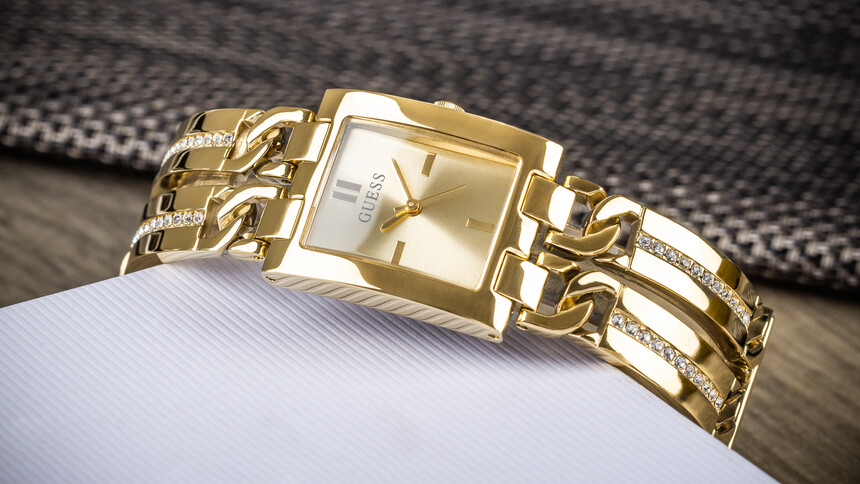 A gdybyśmy mieli wybrać tylko jeden model marki Guess, byłyby to złote, kwadratowe zegarki z podwójną bransoletką – prawdziwy modowy statement.