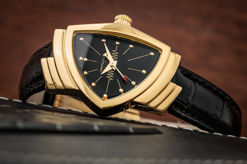 Podobny efekt – Hamilton Ventura. Model, który możesz kojarzyć z serii filmów „Men in Black” i który jest ikoną designu. Mimo nietypowej koperty wciąż jest elegancki, a o jego ponadczasowości świadczy fakt, że jest obecny na rynku od lat 70.