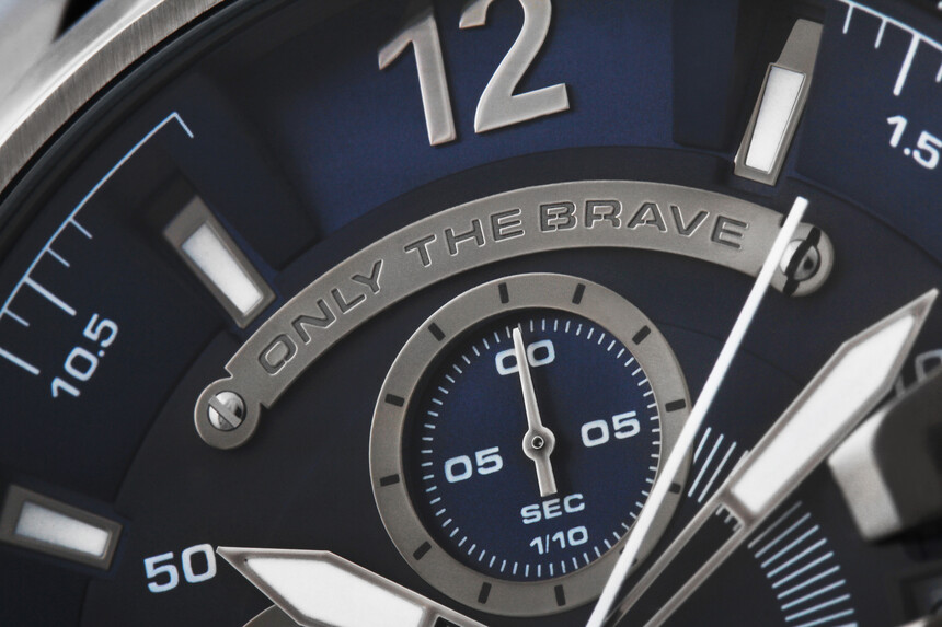 Mega Chief rozpoznasz od razu po dwóch elementach: ozdobnym „haku” zachodzącym na szkło i napisie „Only the brave” na tarczy. Do atutów modeli Mega Chief należy wodoszczelność 100 metrów, dzięki której zniosą większy napór wody i nadają się do całodziennego noszenia. Aby nawet na pierwszy rzut oka jednolity Diesel Mega Chief DZ4329 nie stał się nudny, łączy niebieską tonację tarczy z szaro-czarnym wykończeniem koperty i bransolety.