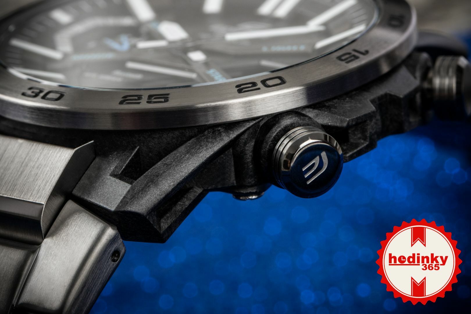Męski zegarek - stalowa bransoleta, karbonowa koperta, mineralne szkło. Wszystkie techniczne parametry znajdą Państwo poniżej