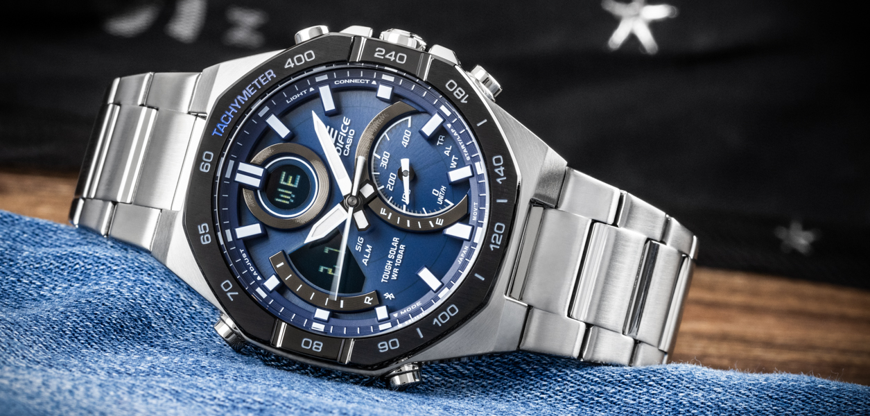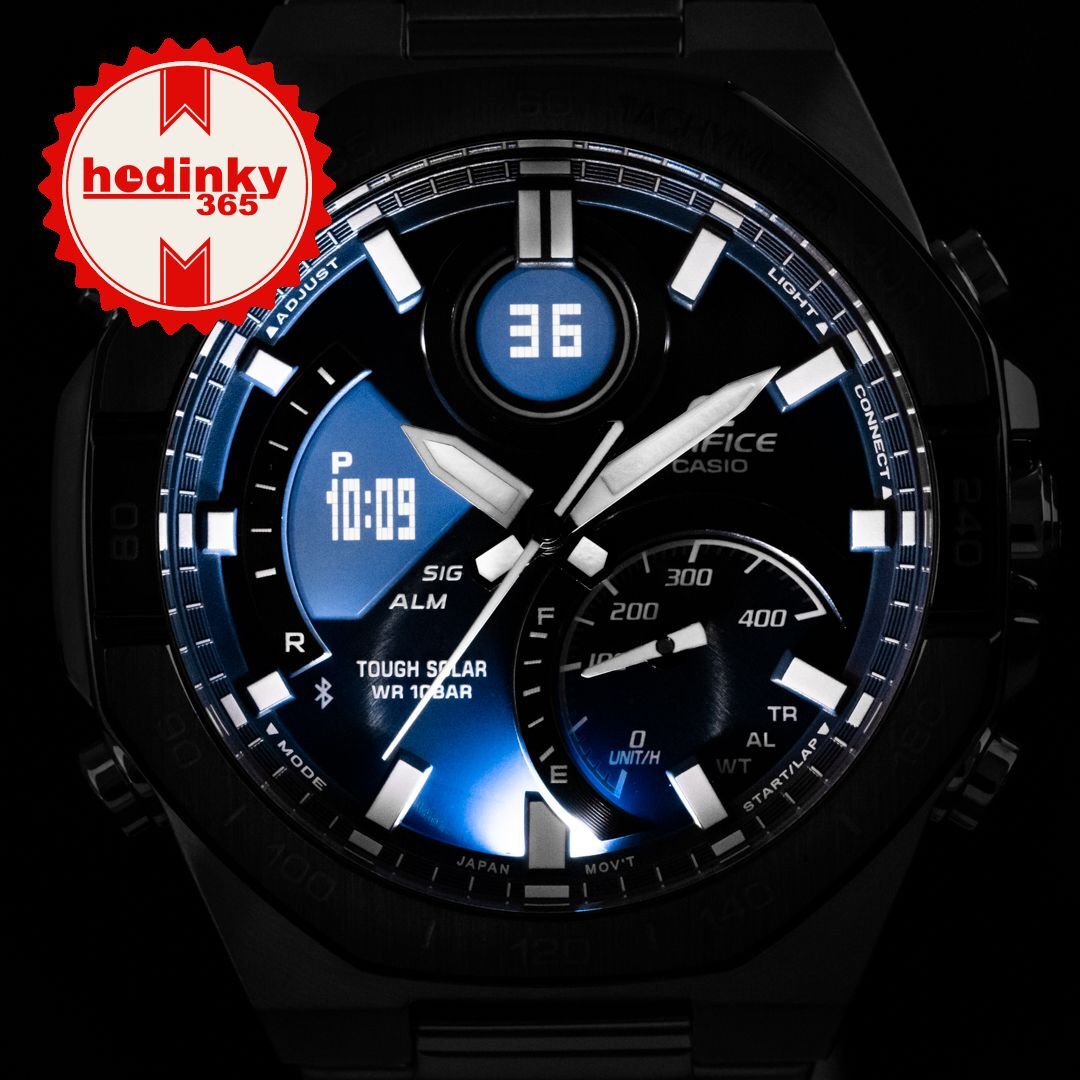 Krótko mówiąc, jest to sportowy model wyposażony w praktyczne funkcje o prawdziwie sportowym charakterze. Jednak seria Edifice jest również mocno inspirowana sportami motorowymi, co widać na modelu ECB-950.