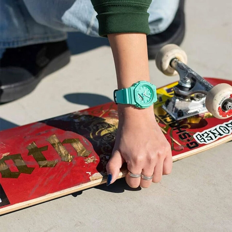 Najważniejsze jest to, że są to jedne z najmniejszych modeli w tej kolekcji z kopertami o średnicy 40,2 mm. Waga wynosi około 40 g w zależności od modelu. Ale zawsze są bardzo lekkie i zwykle pasują nawet do najwęższych damskich nadgarstków. To ich główna atrakcja. Wraz z atrakcyjnymi kolorami, legendarną trwałością (wodoodporność 200M, odporność na wstrząsy), a także wszystkimi niezbędnymi funkcjami, takimi jak alarm, odliczanie i automatyczny kalendarz. Dzięki temu zegarek z łatwością pokaże Ci datę, godzinę w innej strefie czasowej, obudzi Cię rano i pomoże mieć oko na gotujący się makaron, aby wieczorem był al dente. Ponadto jest to świetny sposób na dopasowanie stroju, wystarczy wybrać "swój" kolor.