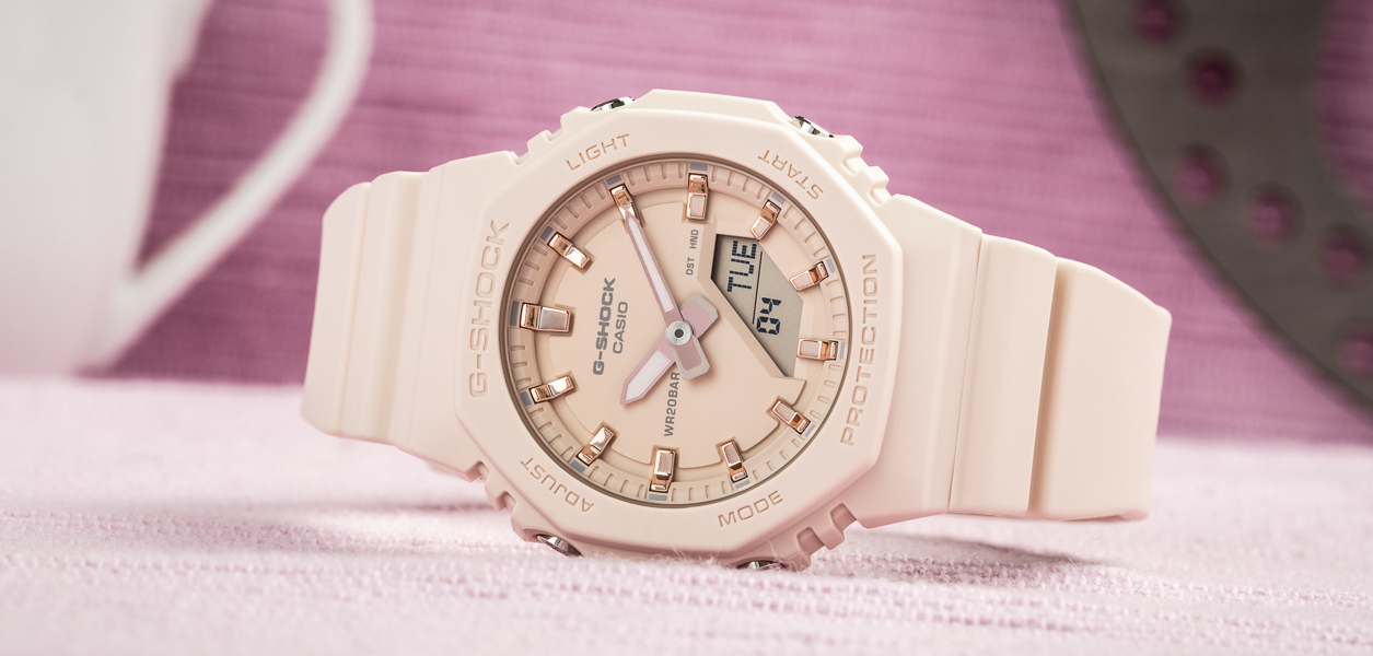 Najważniejsze jest to, że są to jedne z najmniejszych modeli w tej kolekcji z kopertami o średnicy 40,2 mm. Waga wynosi około 40 g w zależności od modelu. Ale zawsze są bardzo lekkie i zwykle pasują nawet do najwęższych damskich nadgarstków. To ich główna atrakcja. Wraz z atrakcyjnymi kolorami, legendarną trwałością (wodoodporność 200M, odporność na wstrząsy), a także wszystkimi niezbędnymi funkcjami, takimi jak alarm, odliczanie i automatyczny kalendarz. Dzięki temu zegarek z łatwością pokaże Ci datę, godzinę w innej strefie czasowej, obudzi Cię rano i pomoże mieć oko na gotujący się makaron, aby wieczorem był al dente. Ponadto jest to świetny sposób na dopasowanie stroju, wystarczy wybrać "swój" kolor.