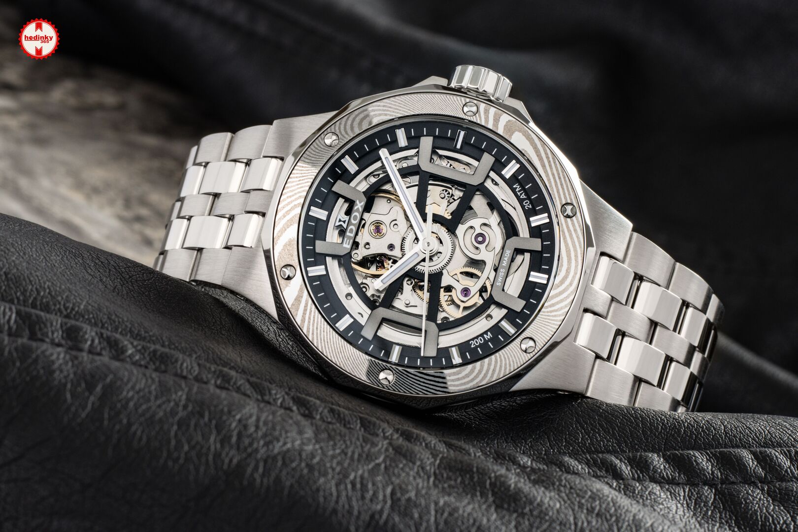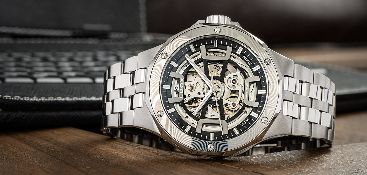 Mechaniczny z automatycznym naciągiem. Edox Caliber 853 zbudowany na Sellita SW 200, Rezerwa chodu 42h, 28.800 BPH (4Hz), 25 kamieni