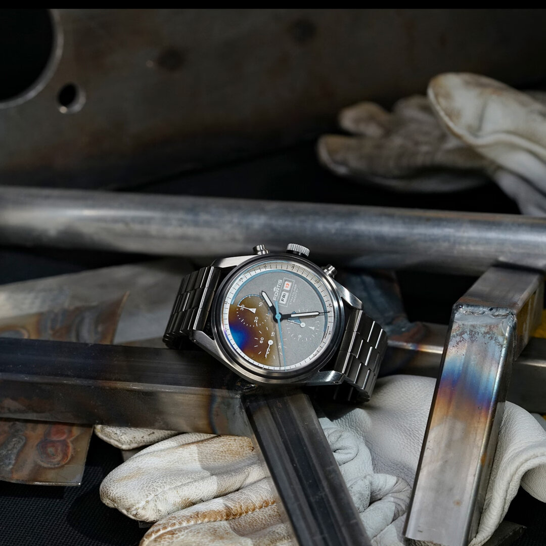 Mechaniczny z automatycznym naciągiem. Fortis Werk 17, Rezerwa chodu 60h, 28.800 BPH (4Hz), 26 kamieni, Hacking