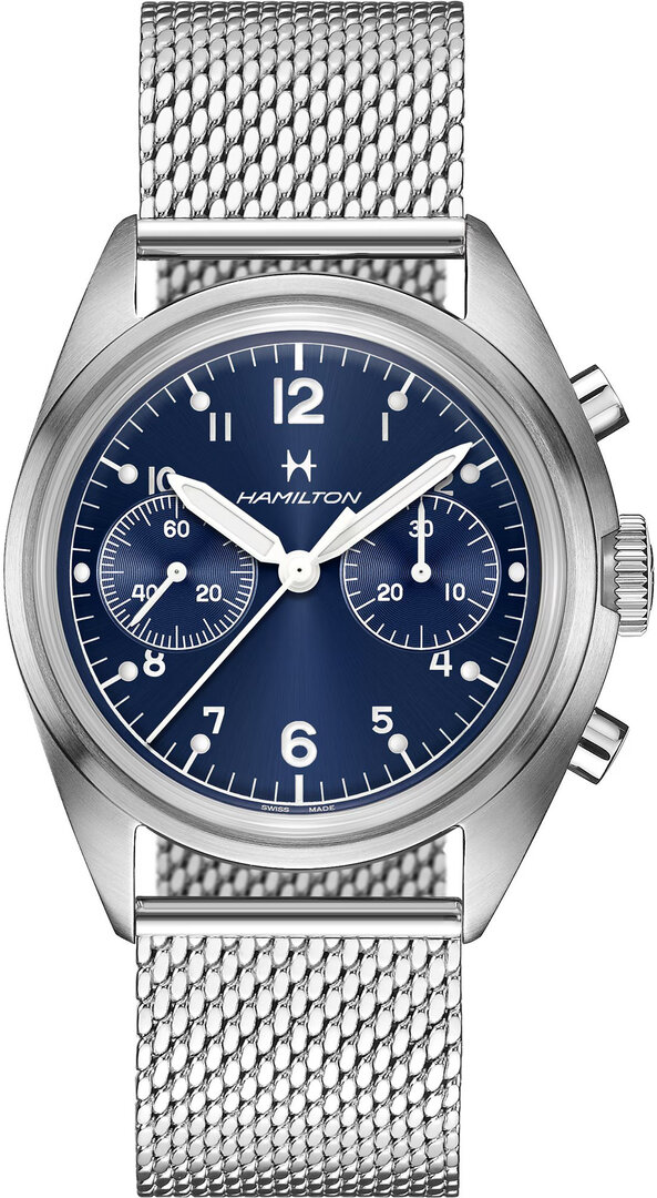 Mechaniczny z ręcznym naciągiem. Hamilton H-51 zbudowany na ETA/Valjoux 7753 zbudowany na ETA/Valjoux 7750, Rezerwa chodu 60h, 25 kamieni, Hacking