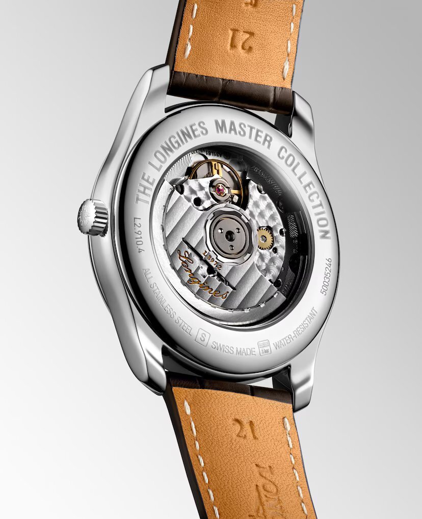 Mechaniczny z automatycznym naciągiem. Longines L897, Rezerwa chodu 72h, 25.200 BPH (3,5Hz)