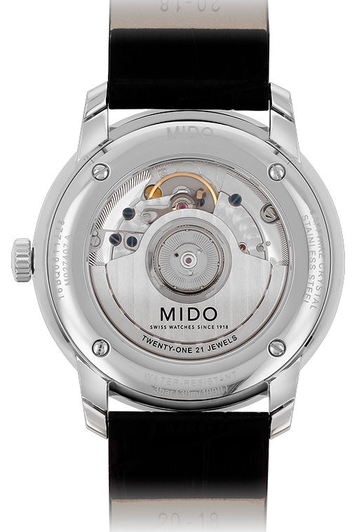 Mechaniczny z automatycznym naciągiem. Mido 1192 zbudowany na ETA 2892-A2, Rezerwa chodu 42h, 28.800 BPH (4Hz), 21 kamieni