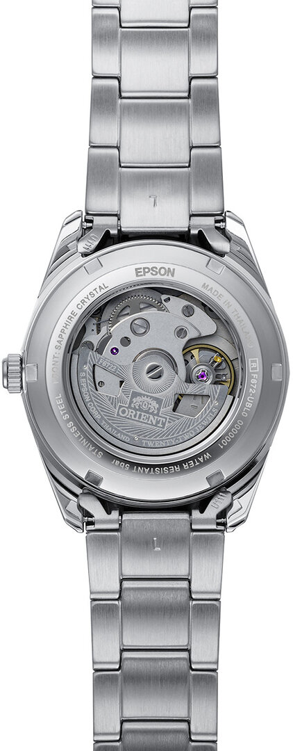 Mechaniczny z automatycznym naciągiem. Orient F6722, Rezerwa chodu 40h, 21.600 BPH (3Hz), 22 kamieni, Hacking, Możliwość naciągu ręcznego