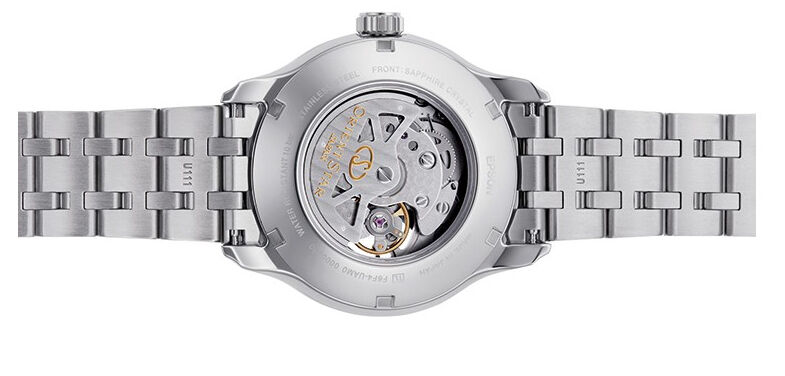 Mechaniczny z automatycznym naciągiem. Orient F6F44, Rezerwa chodu 50h, 21.600 BPH (3Hz), 24 kamieni, Możliwość naciągu ręcznego