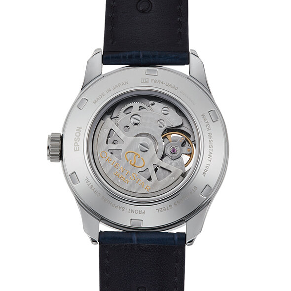 Mechaniczny z automatycznym naciągiem. Orient F6R42, Rezerwa chodu 50h, 21.600 BPH (3Hz), 22 kamieni, Hacking, Możliwość naciągu ręcznego