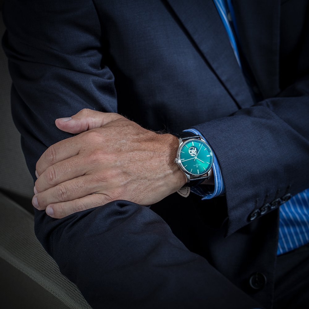 Męski zegarek - skórzany pasek, stalowa koperta, szafirowe szkło. Wszystkie techniczne parametry znajdą Państwo poniżej