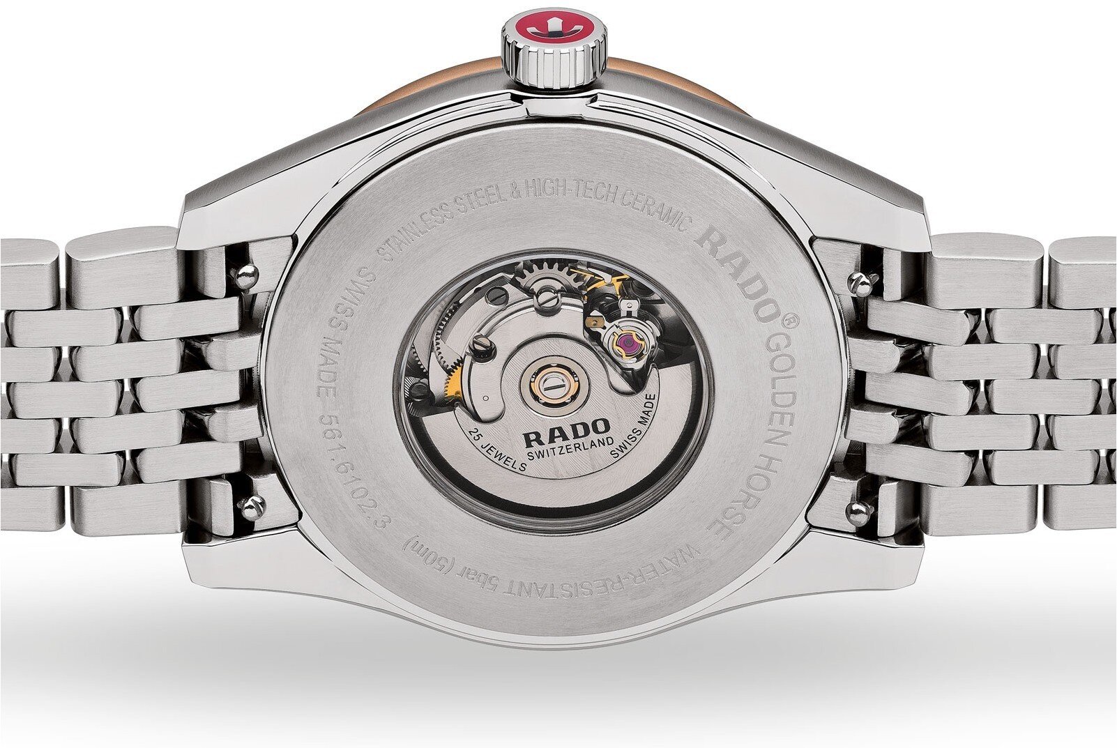 Mechaniczny z automatycznym naciągiem. Rado R561, Rezerwa chodu 44h, 28.800 BPH (4Hz), 25 kamieni, Hacking