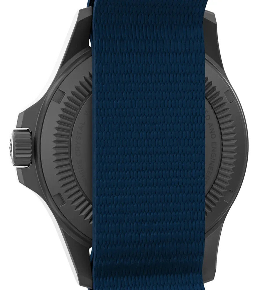 Męski zegarek - tekstylny pasek, stalowa koperta, szafirowe szkło. Wszelkie techniczne parametry znajdą Państwo poniżej