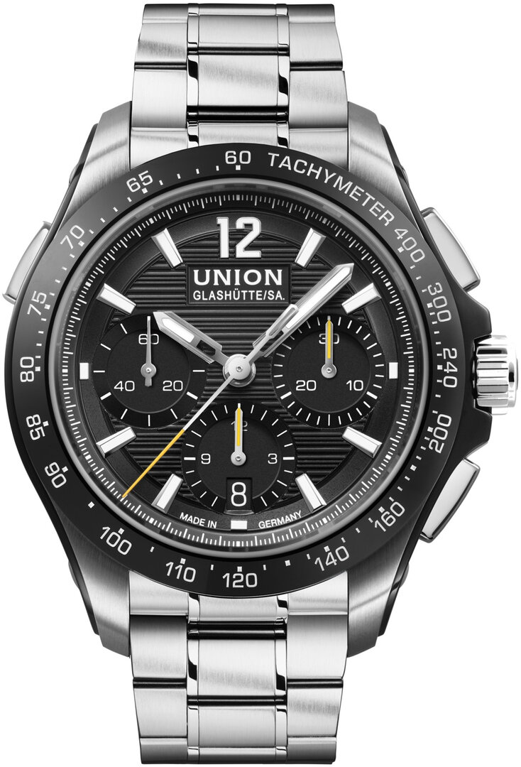 Mechaniczny z automatycznym naciągiem. Union Glashütte UNG-27.S1 zbudowany na ETA/Valjoux 7753 zbudowany na ETA/Valjoux 7750, Rezerwa chodu 65h, 28.800 BPH (4Hz), 29 kamieni, Hacking, Możliwość naciągu ręcznego